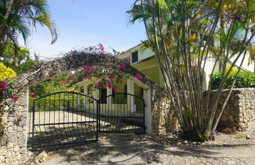 Looking for a fixer-upper in the Dominican Republic with potential and space? This two-level 4-bedroom countryside villa sits on a lush 2,100 m² lot surrounded by mature tropical gardens with a long private driveway leading to an adjacent 4,500 m² lot.